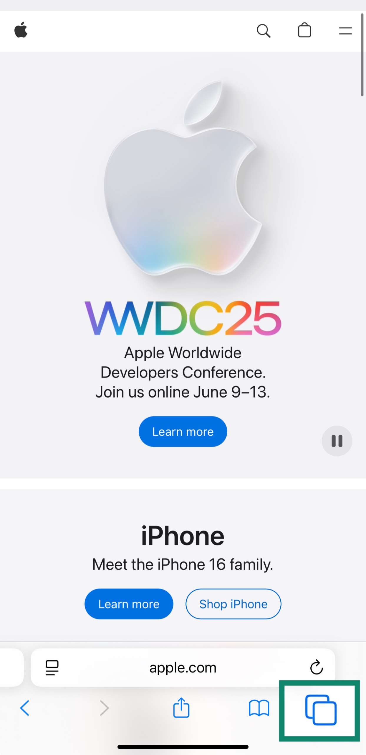 - Launch Safari and click the Tabs button (two overlapping squares) in the bottom-right corner.