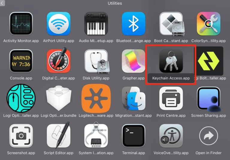 - Open Spotlight (magnifying glass in the top-right or press Command + Space). Type Keychain Access and select it.