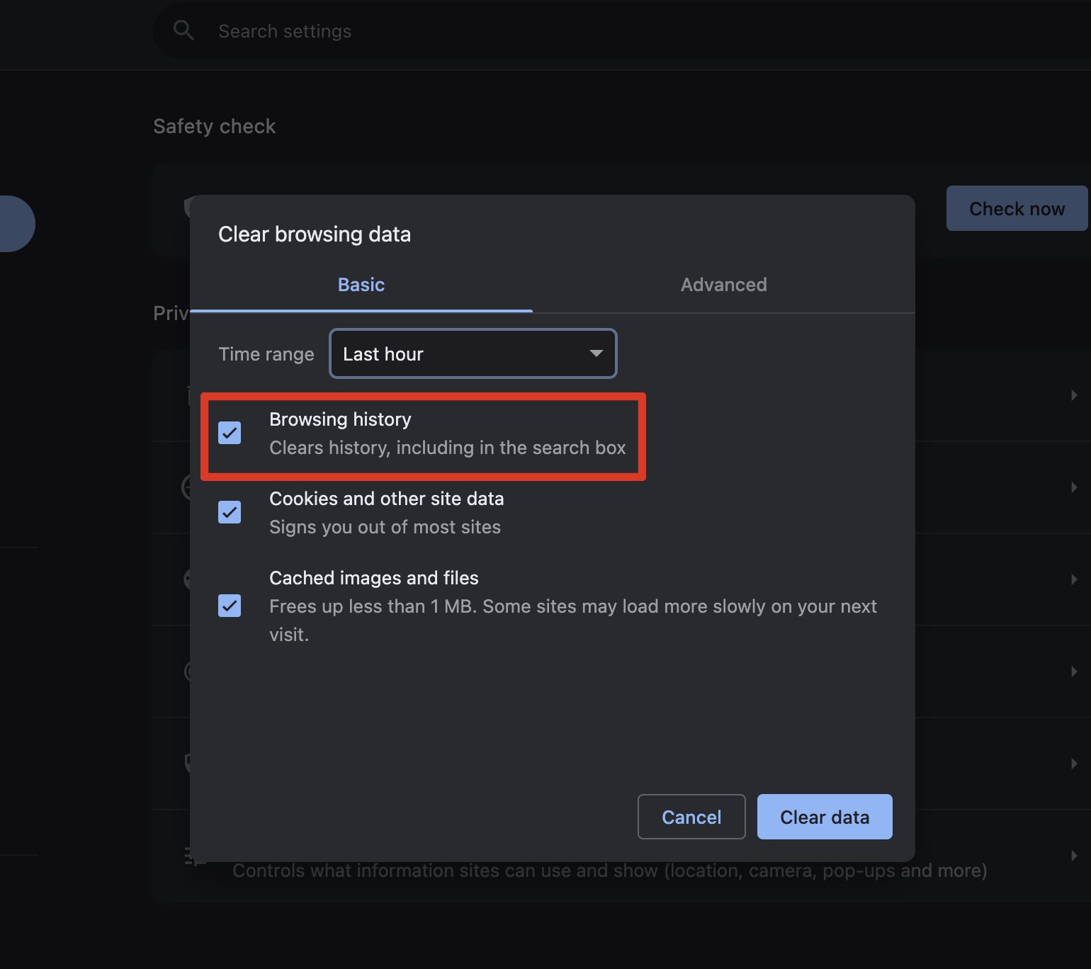 Over time, a lengthy browser history can slow Chrome down. Periodically wiping your history can help maintain optimal browser speed. To do this, just follow the steps you followed to clear the browser cookies and cache. Just ensure that Browsing history is selected when you press Clear data.