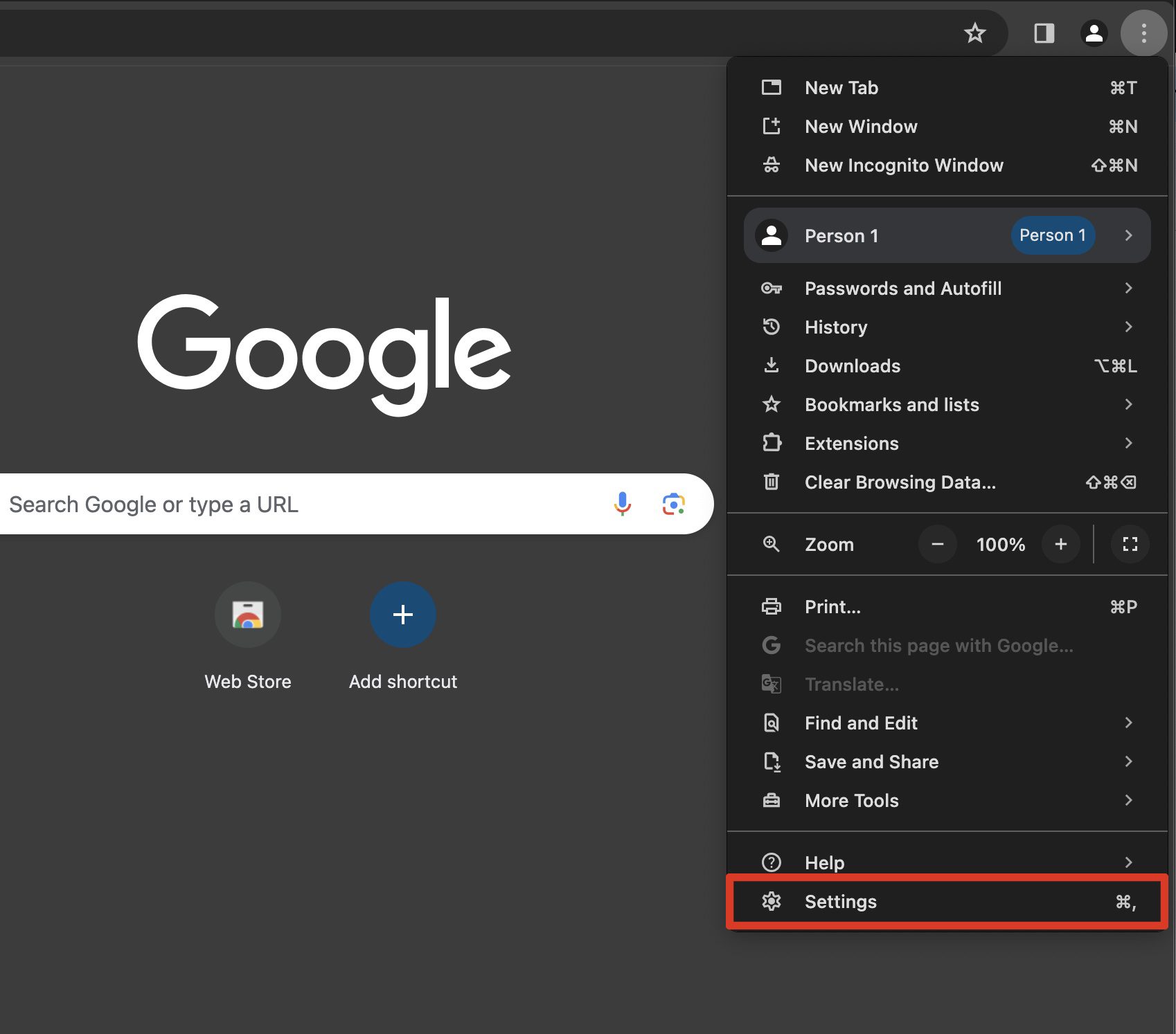 1. Go to More which is the 3 dots in the top right corner of your browser
