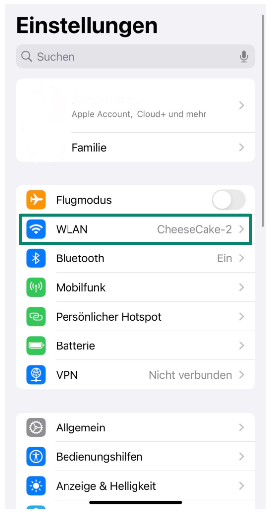 1. Öffnen Sie die Einstellungen und tippen auf Wi-Fi.