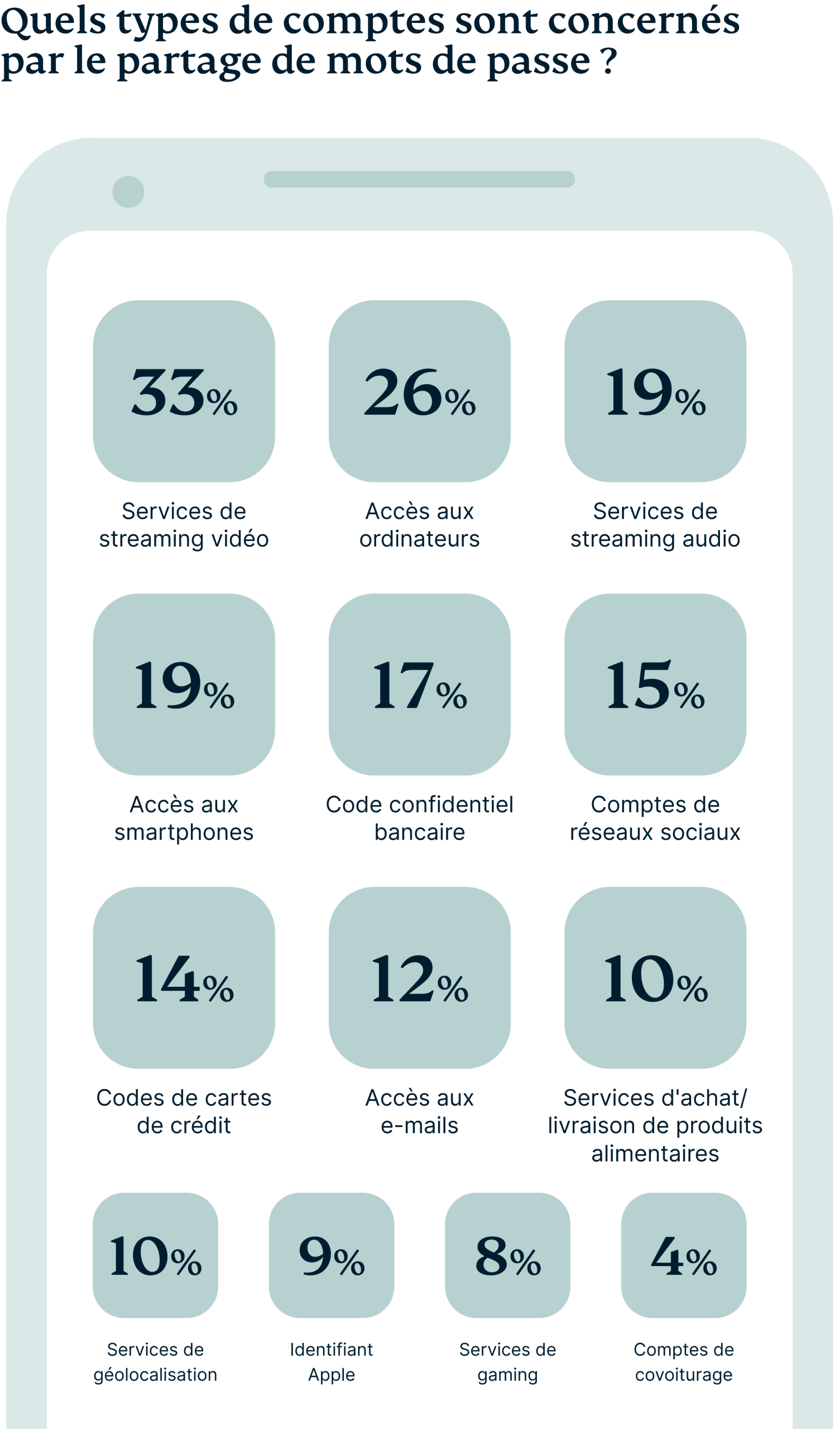 | J'utilise le même mot de passe pour d'autres comptes en ligne | 49 % |