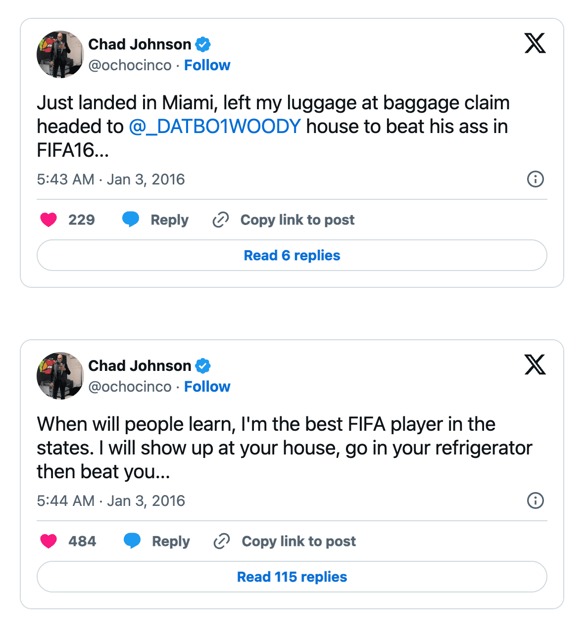 Johnson, également connu sous le nom OchoCinco, n'est pas seulement un ancien joueur célèbre de la NFL, mais aussi une figure emblématique des jeux vidéo. Après sa carrière de footballeur américain, Johnson a su exprimer son esprit de compétition dans le gaming, excellant notamment dans des jeux tels que Madden, Call of Duty et FIFA.