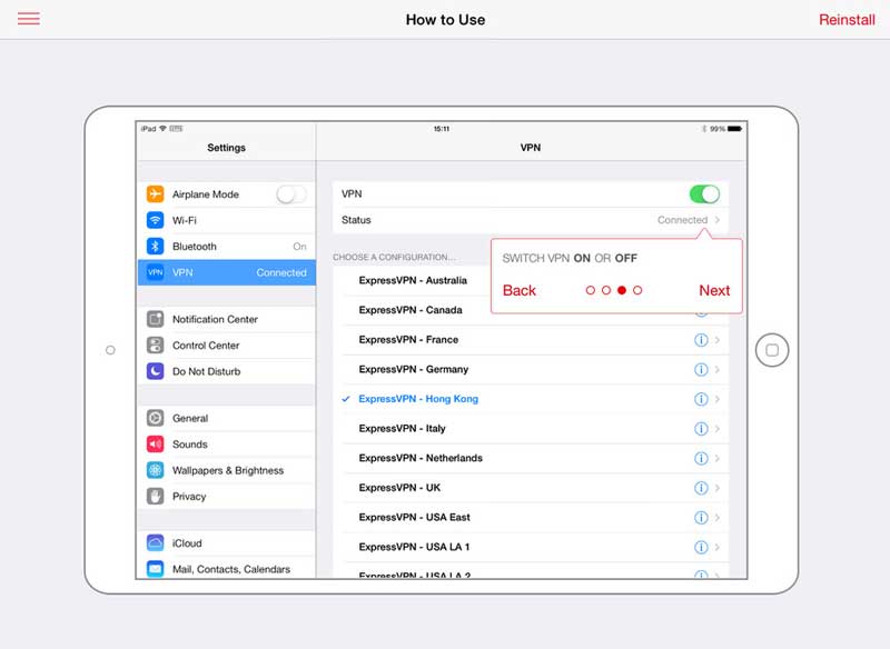 On iPad only: now you can run ExpressVPN beside another app of your choice. Change your server locations without ever having to return to the main screen!