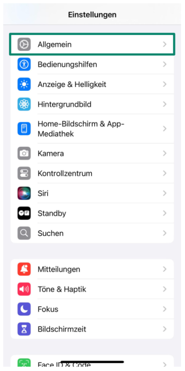1. Öffnen Sie Einstellungen und tippen Sie auf Allgemein.