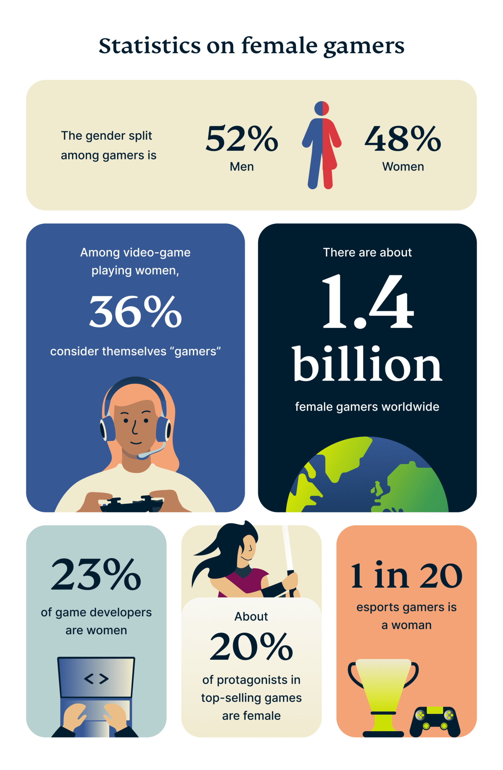 Anche nel gioco competitivo e negli eSport, le donne stanno facendo passi da gigante, partecipando e spesso dominando tornei di alto livello. Tuttavia, con solo 1 giocatrice su 20 negli eSport, molte giocatrici affrontano ancora una battaglia in salita. Molestie e pregiudizi sono ancora diffusissimi, e le donne vengono spesso sottovalutate o messe da parte prima ancora di iniziare a giocare.