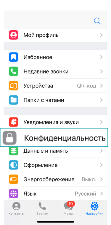 - Нажмите на Конфиденциальность. Здесь вы можете выбрать, кто будет видеть ваш номер телефона, фото профиля и статус последнего посещения. Ограничьте доступ своими контактами, чтобы не показывать свои личные данные всем и общаться в TG более приватным образом.