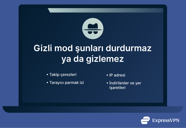 Gizli mod, sekmeyi kapattıktan sonra çerezlerin saklanmasını önler ama web sitelerinin oturum sırasında bunları kullanma girişimlerini genellikle engellemez. Bazı siteler sizi geçici olarak takip ediyor olabilir ve bir hesapta oturum açtığınızda aktivitelerinizi profilinizle ilişkilendirilebilirler.